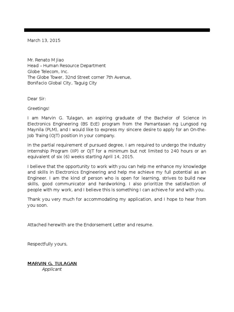 Application letter for OJT from cdn.slidesharecdn.com We did not find results for: Check spelling or type a new query. Maybe you would like to learn more about one of these? Application letter sample for work immersion.